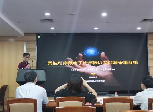曾炜的路演项目是《可穿戴电子传感器以及能源采集系统》。该项目立足柔性传感技术前沿科技,通过有效收集人体运动过程中的生物机械能并转化为电能,形成的可穿戴电子传感器以及能源采集系统,解决可穿戴电子产品的能源供给和续航时间问题。同时,针对特殊环境与特殊信号下的压力、温度、湿度、脉搏等测量,最终赋予与人类皮肤同等功能,让机器人具有人类的感知能力,使装有义肢的人恢复感觉,在压力成像、健康监测、临床医学、人工智能、可穿戴设备等领域具有广阔的应用前景。